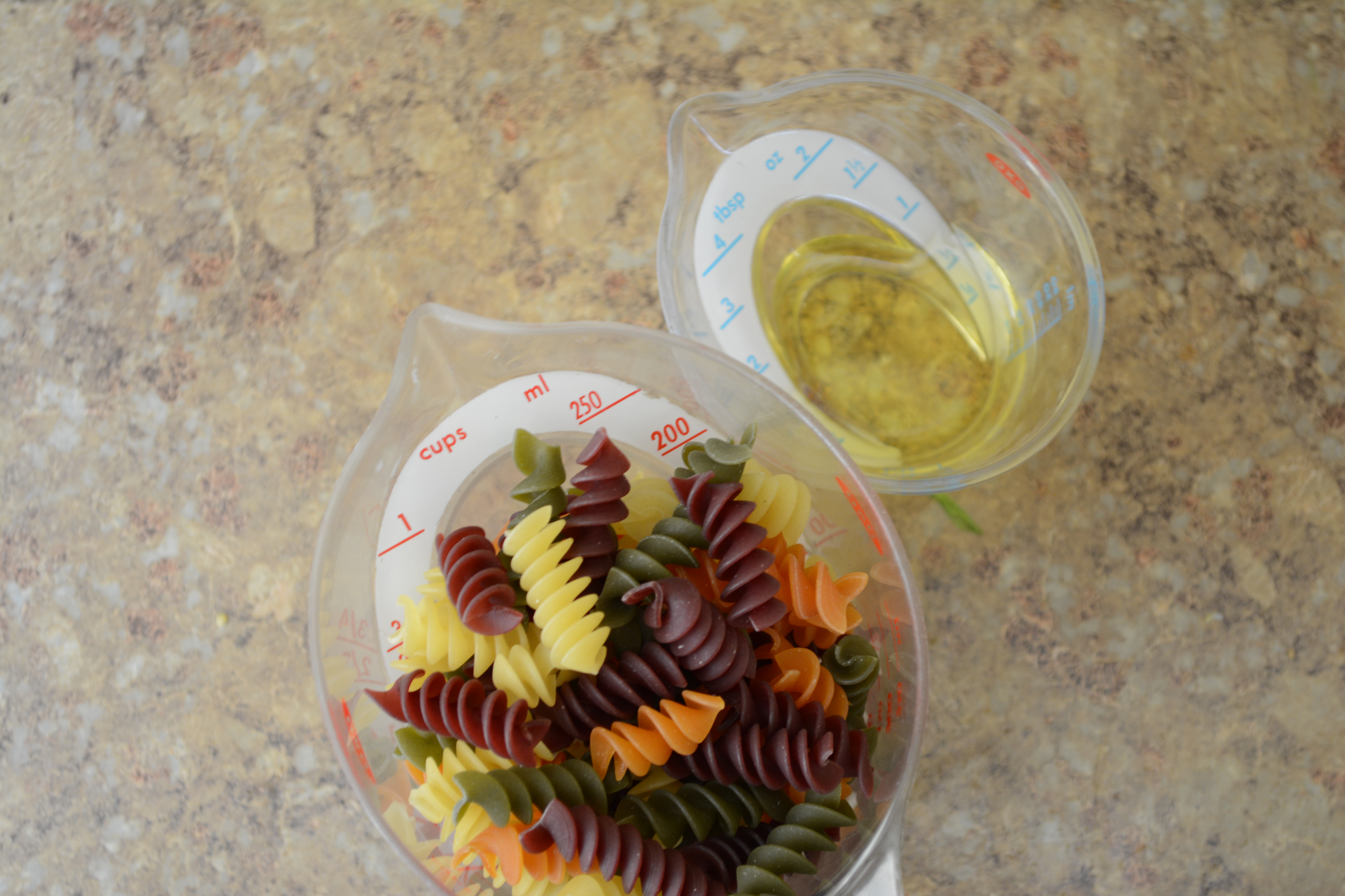 One cup of veggie pasta cooked with 1tbl olive oil. I LOVE Wacky Mac.