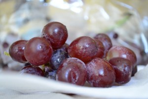 A small bunch of purple grapes.