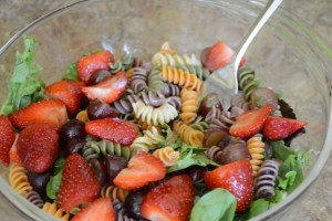 So I’m known for being an Adventuress in the Kitchen. I throw whatever I have together and hope it comes out edible. If not, I drown it in vinegar. This salad is no exception for my wonton ways. Though the mixture might not seem likely, it came together quite well and I was pushed to write about it.